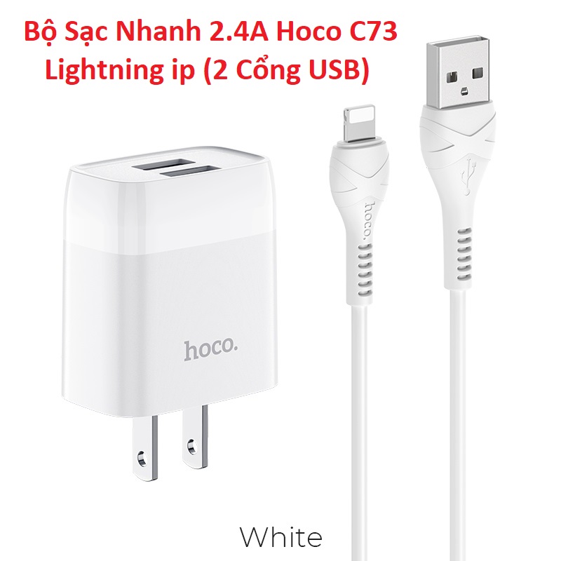 Bộ Sạc Nhanh 2.4A Hoco C73 Lightning ip (2 Cổng USB). VN