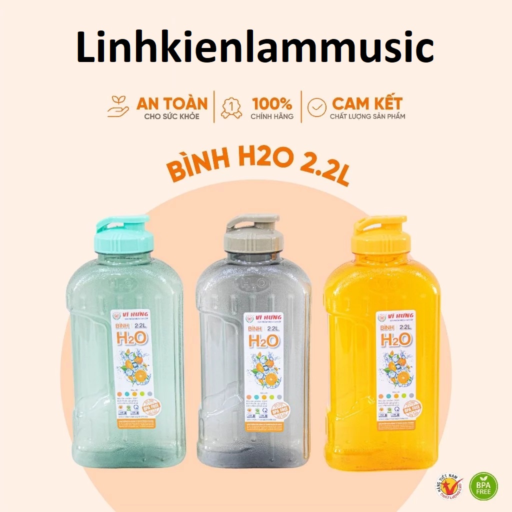 Bình nước nhựa Vĩ Hưng H2O 2.2L (Lít)