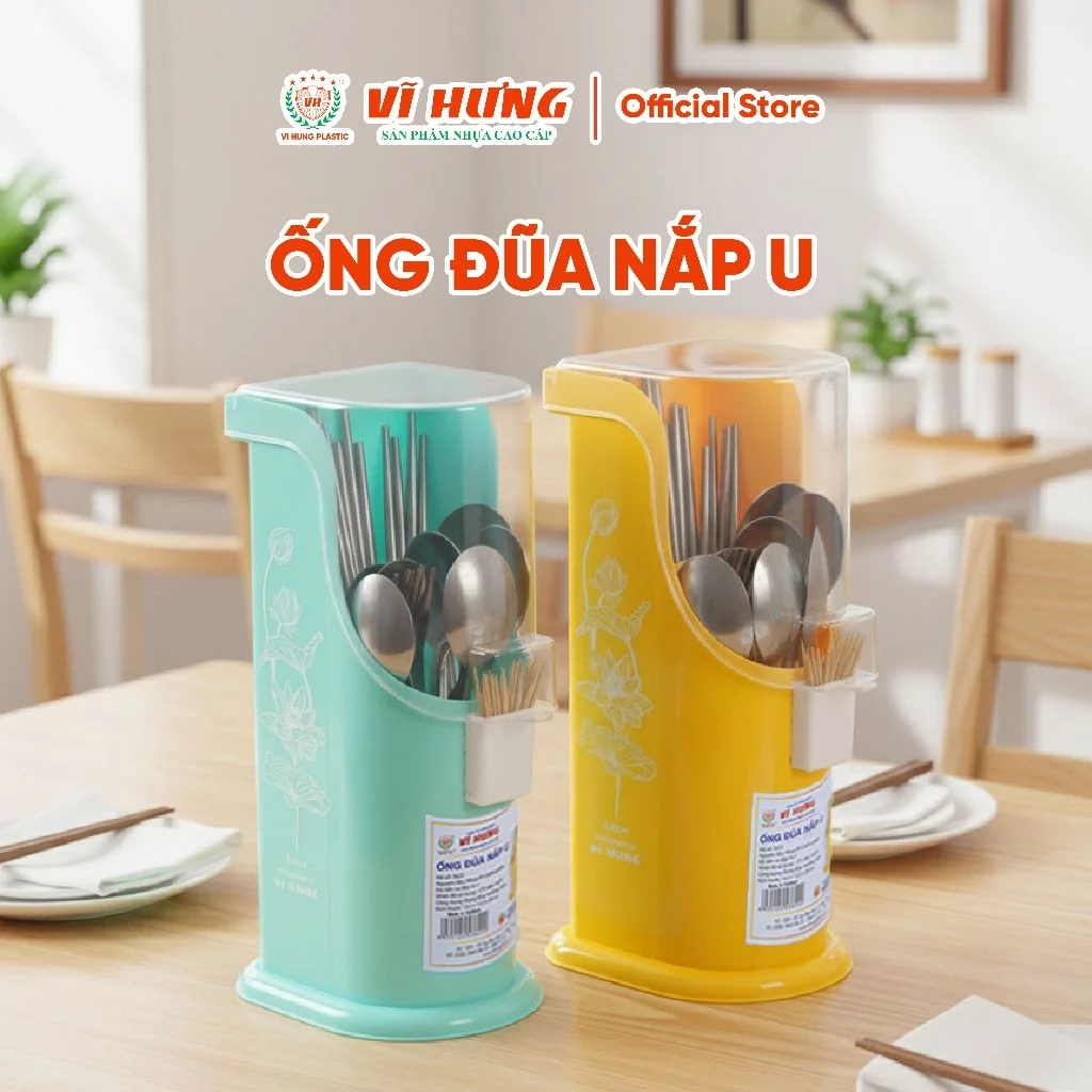 Ống Đũa 2 Ngăn Có Nắp Đậy Kèm Khe Tăm Nhựa Vĩ Hưng 3622