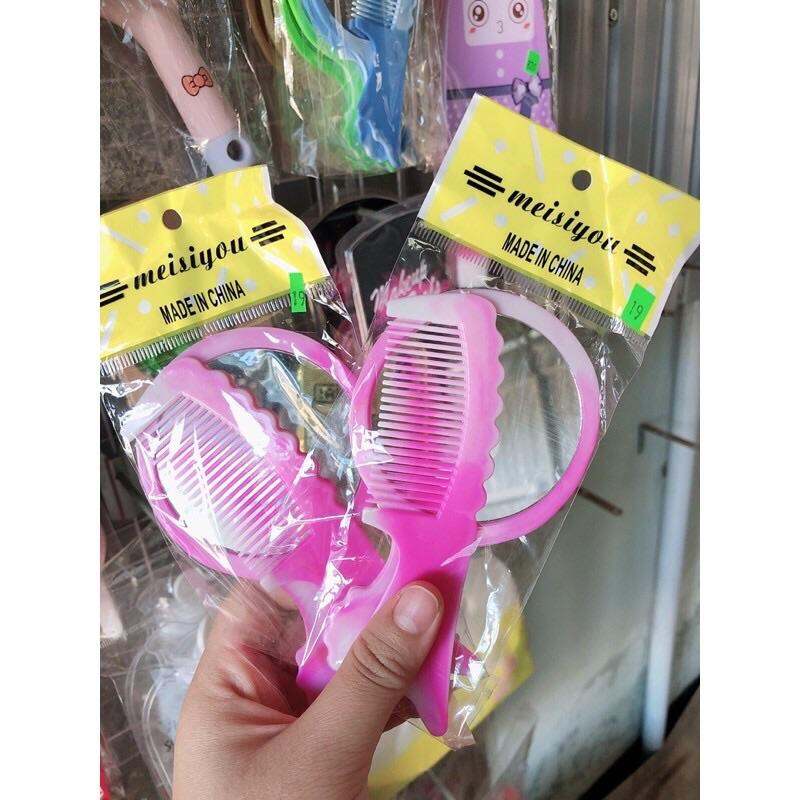 Gương nhựa cầm tay kèm lược mini bỏ túi kiểu dáng hoàng gia///DL///1