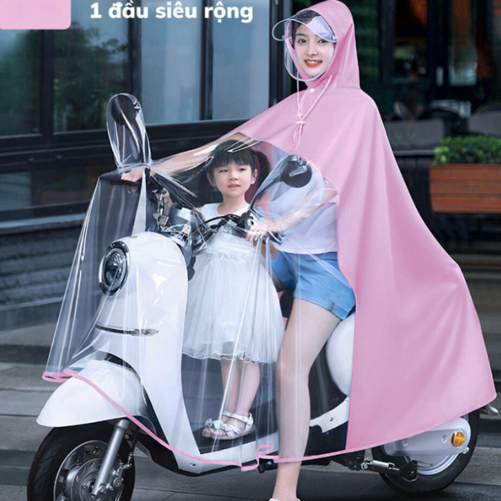 Tên sản phẩm : Áo mưa nửa trước trong suốt cho Mẹ và Bé, che phủ toàn thân, kèm kính chắn mưa.