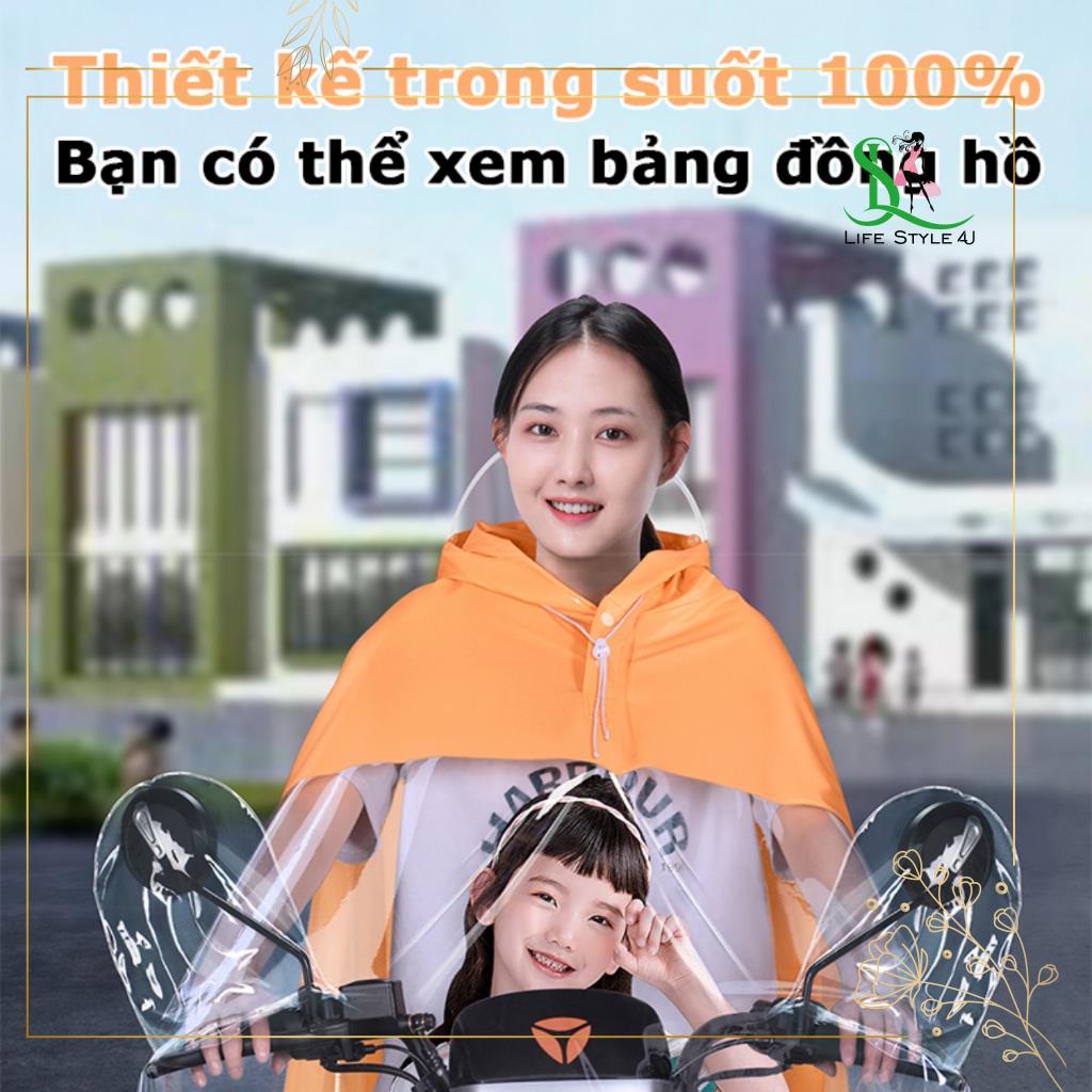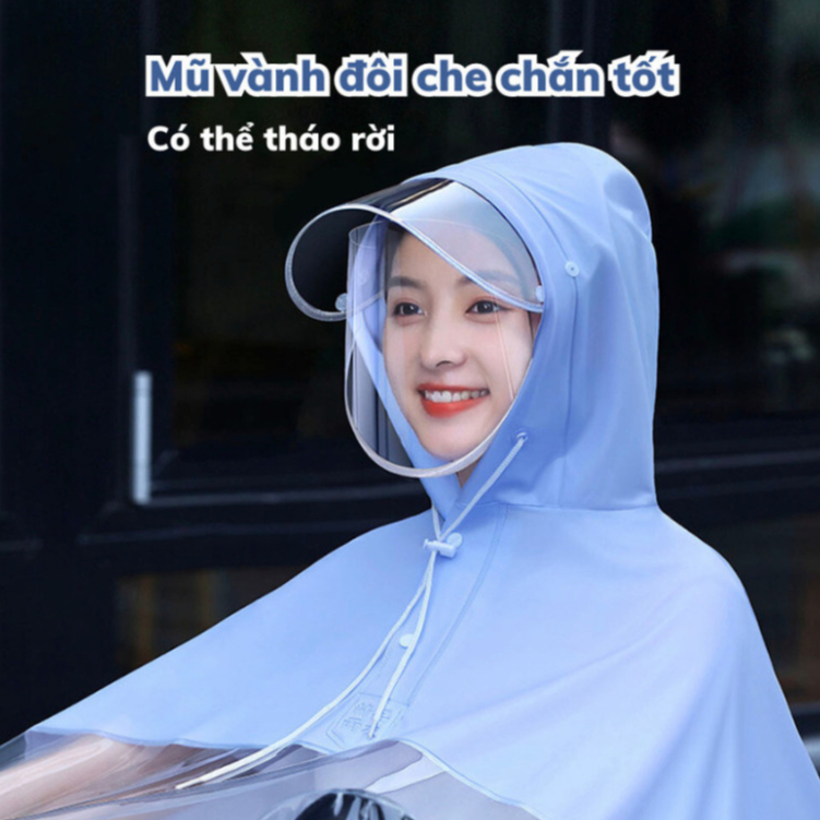 Áo mưa trùm đi xe có kính chắn nước phong cách Nhật Bản vải dày cao cấp chống thấm tốt kèm túi đựng.