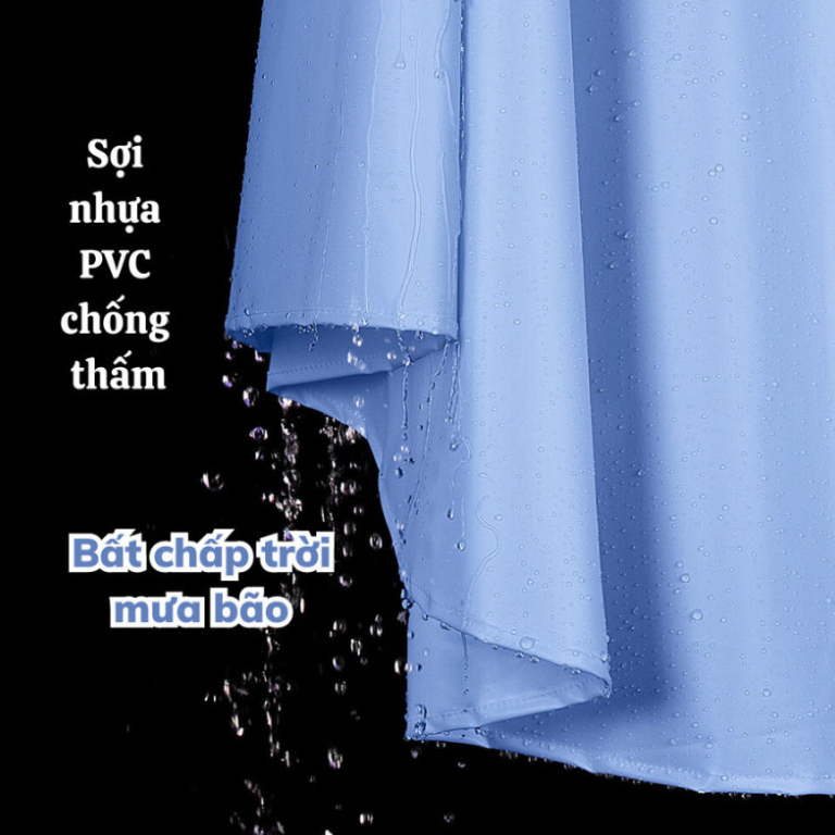 Áo mưa làm bằng vải dày 0.19mm – 0.22mm chắc chắn chống thấm nước tốt.