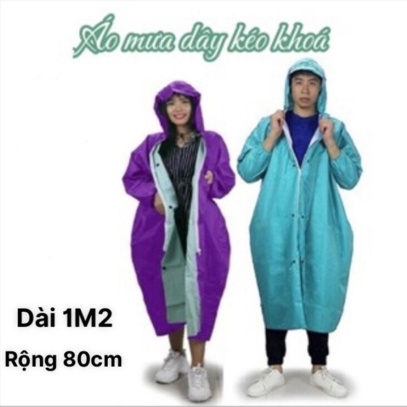 Áo Mưa Dây Kéo Vải Nhựa + Nút Bấm