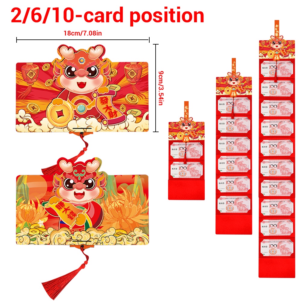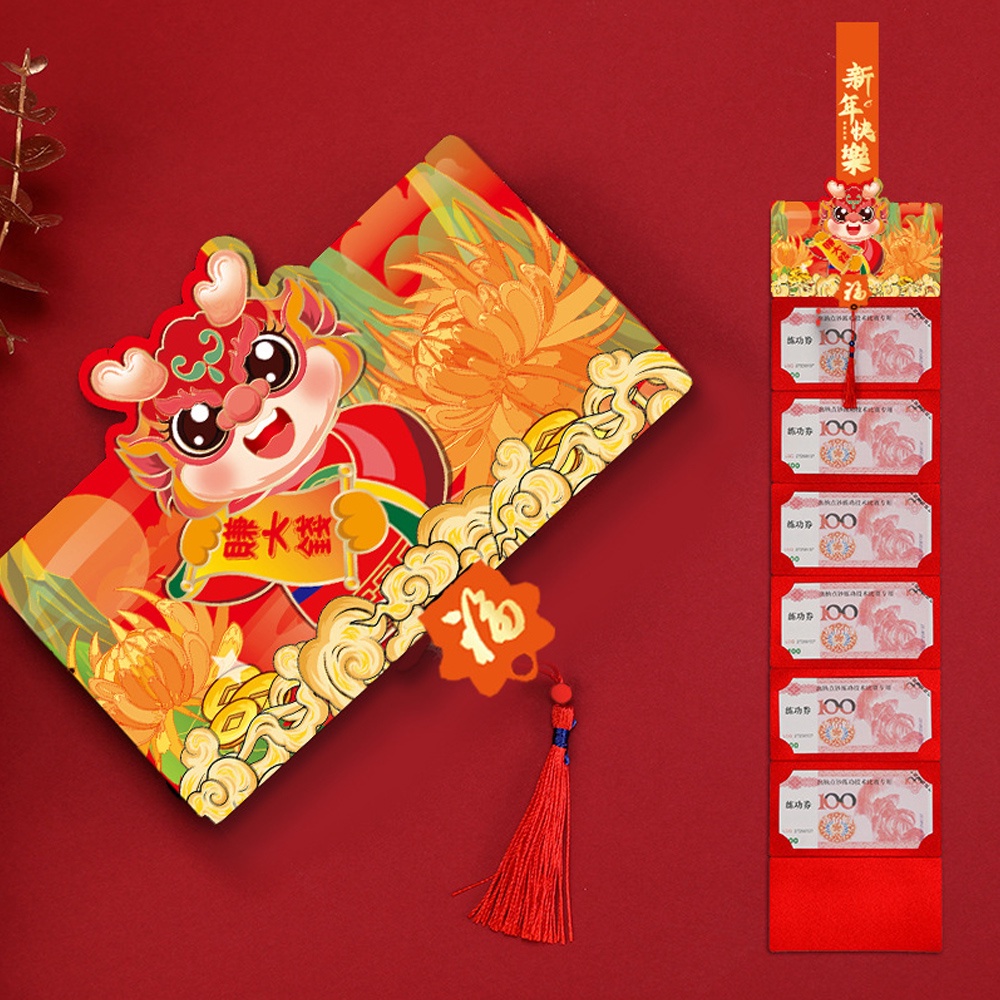 💥 Bao lì xì Xếp 2 ngăn và Xếp 6 ngăn và 10 ngăn Bìa trước và sau có dây lời chúc kết nối như một chiếc ví lì xì mini tiện lợi
