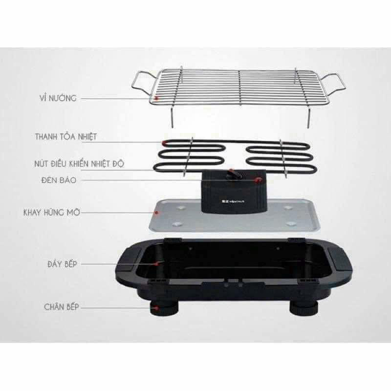 ✓ Gồm 3 bộ phận: vỉ nướng, cụm điện trở và khay nướng.
