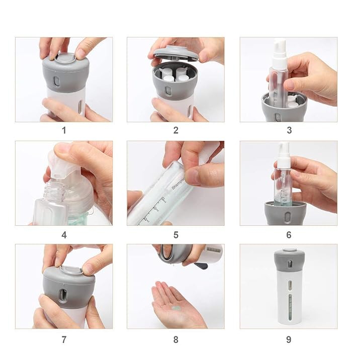 Bình chiết mỹ phẩm 4in1 rất dễ dàng để bơm dung dịch và bình, vỏ ngoài có vạch trong theo dõi lượng dung dịch còn trong bình.