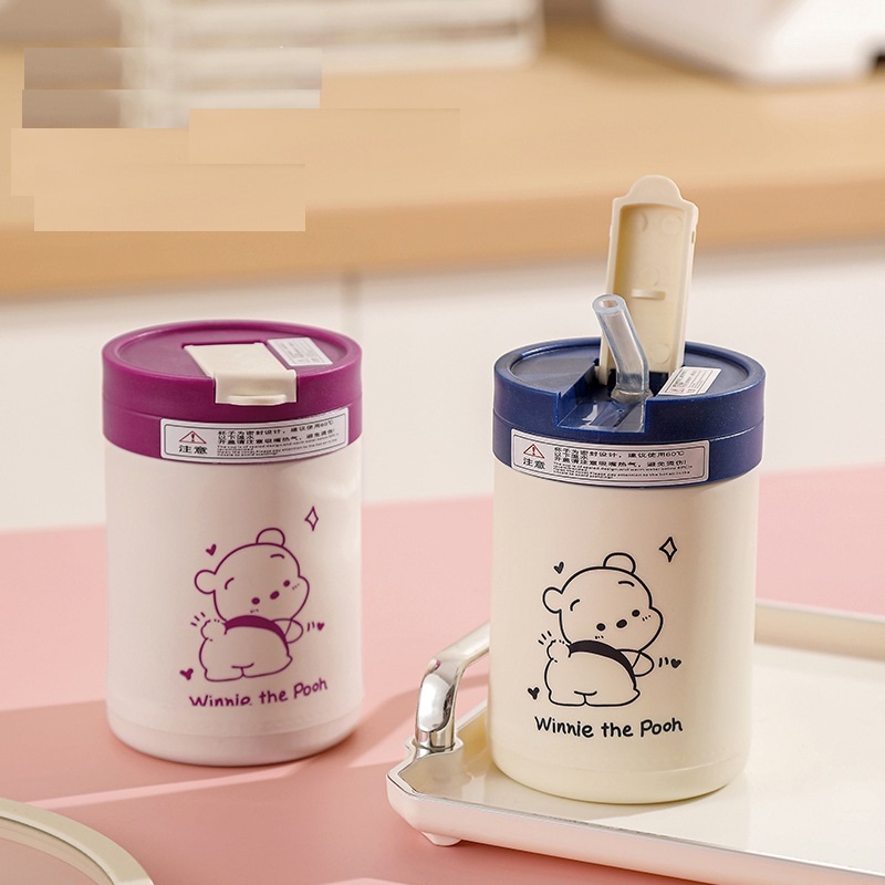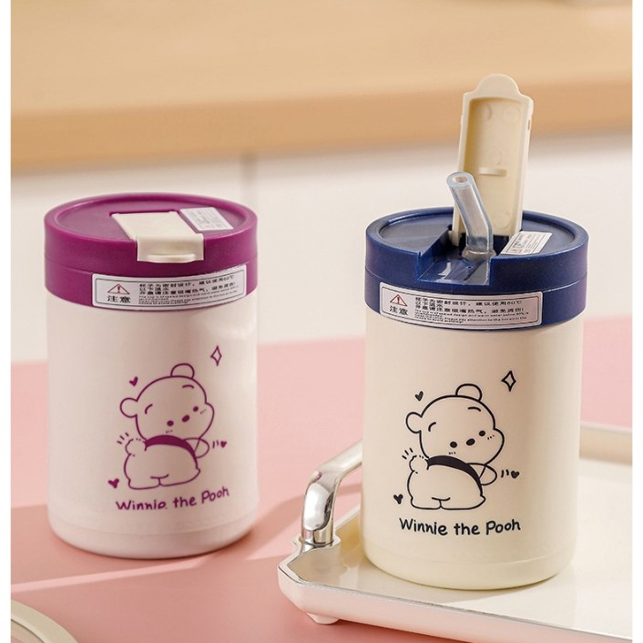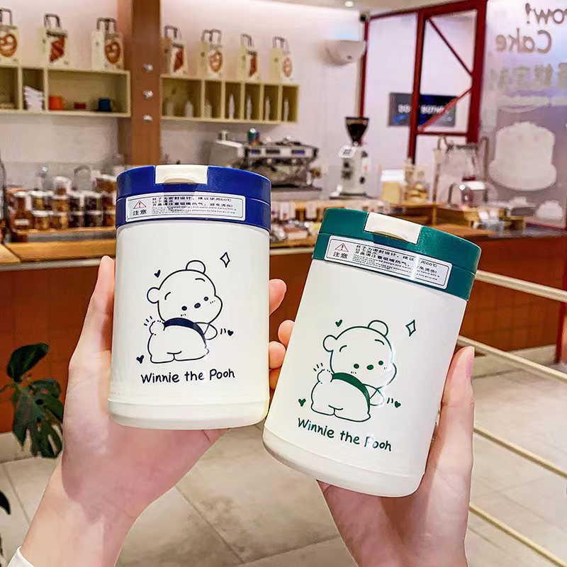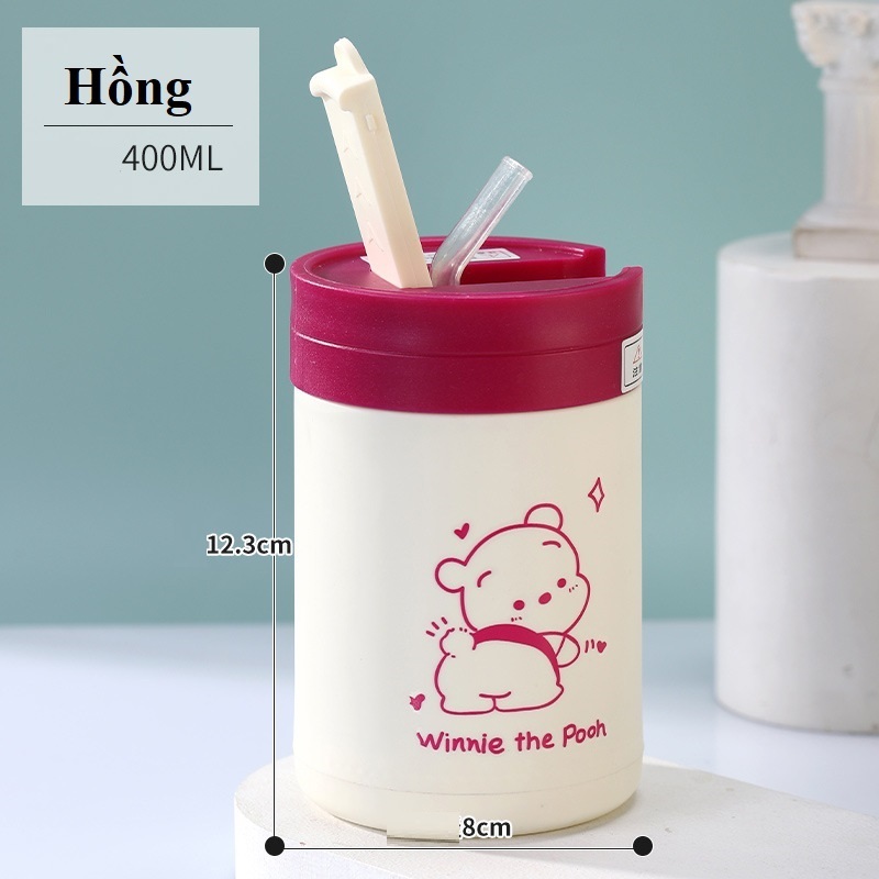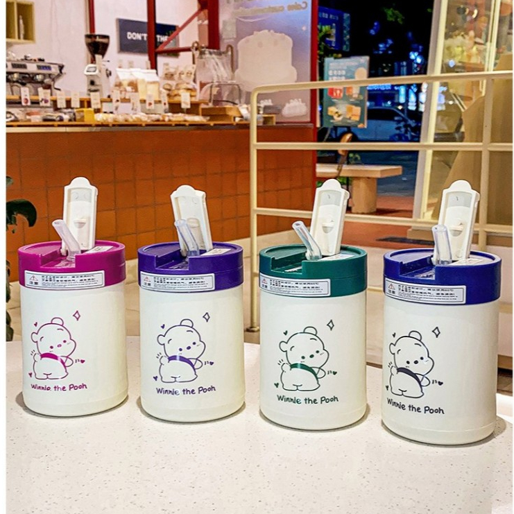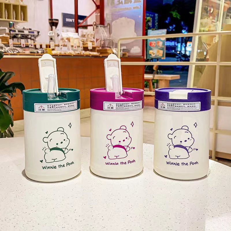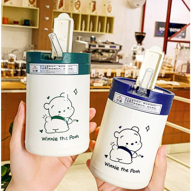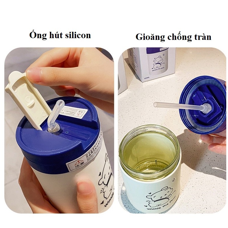 Bình/ Cốc 2 lớp lõi thủy tinh GẤU POON kèm ống hút silicon///dl