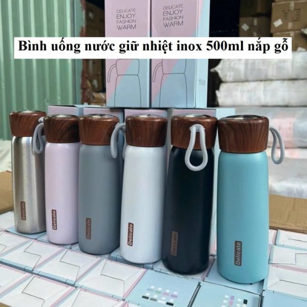 TÊN SẢN PHẨM: Bình Giữ Nhiệt Nắp Vân Gỗ Delicate 500ML – Inox 304