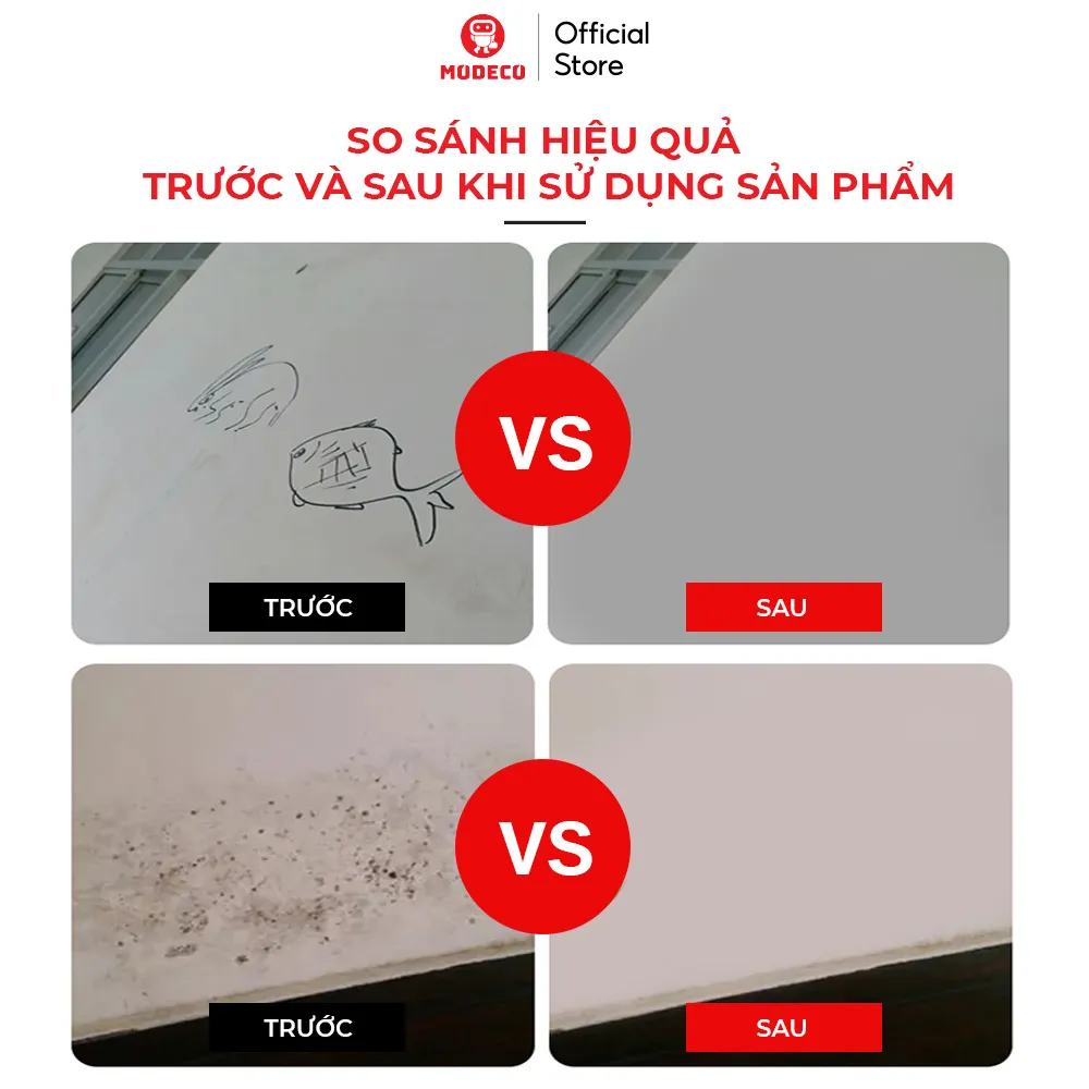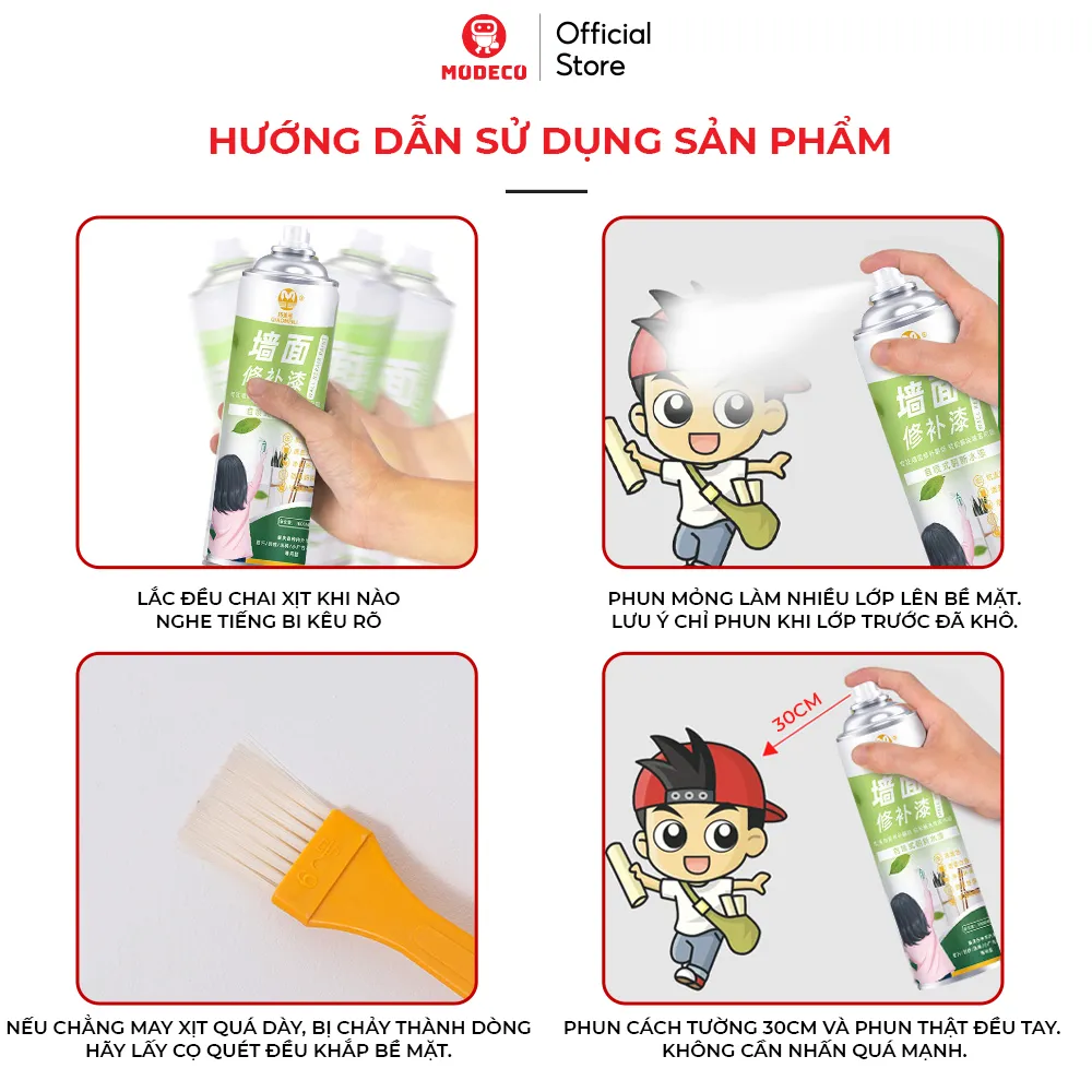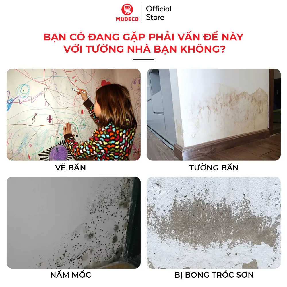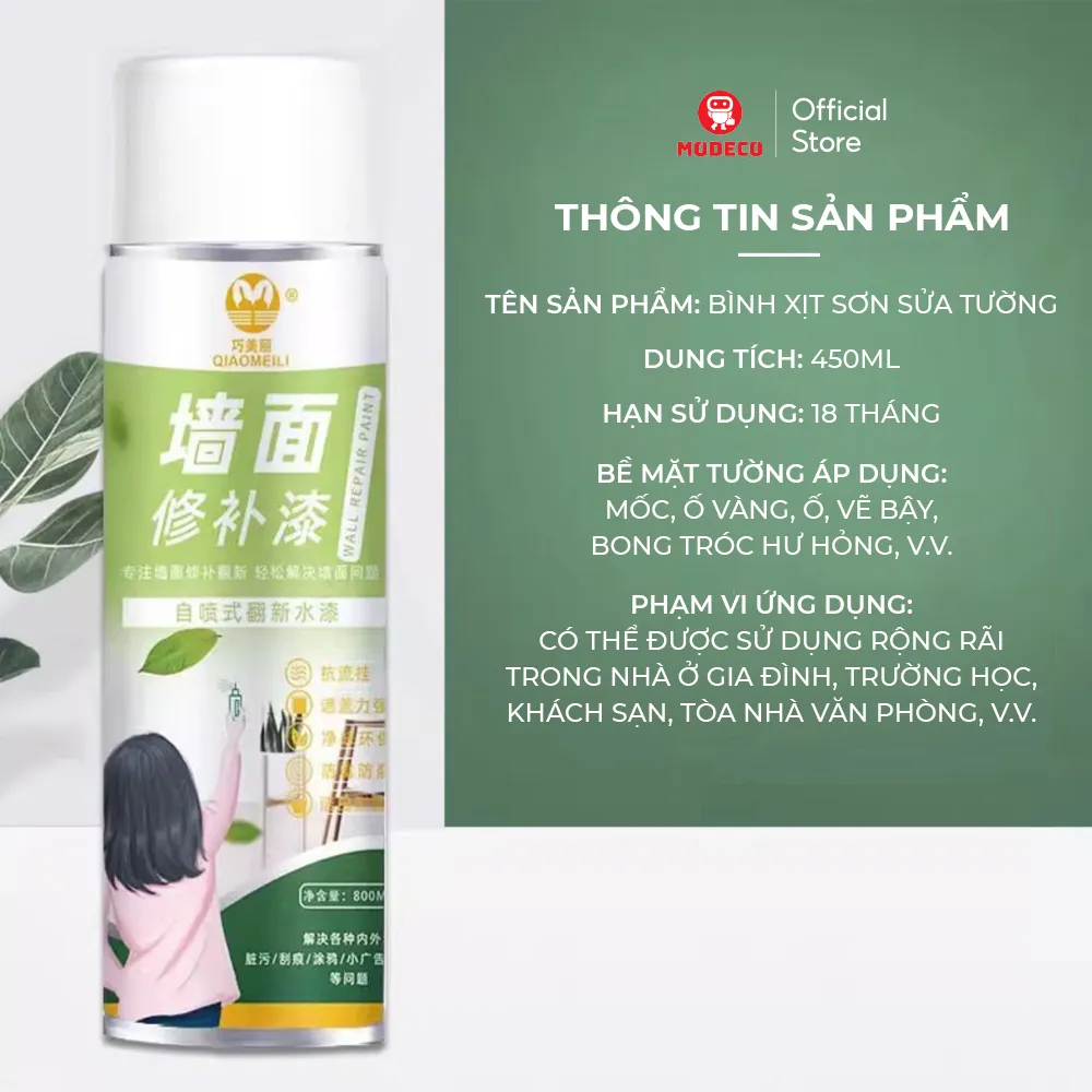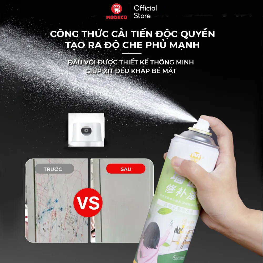 Để làm sạch những vết bẩn này nhanh chóng, dễ dàng trên tường, bạn hãy dùng bình xịt sơn sửa tường nhà Modeco 450ml