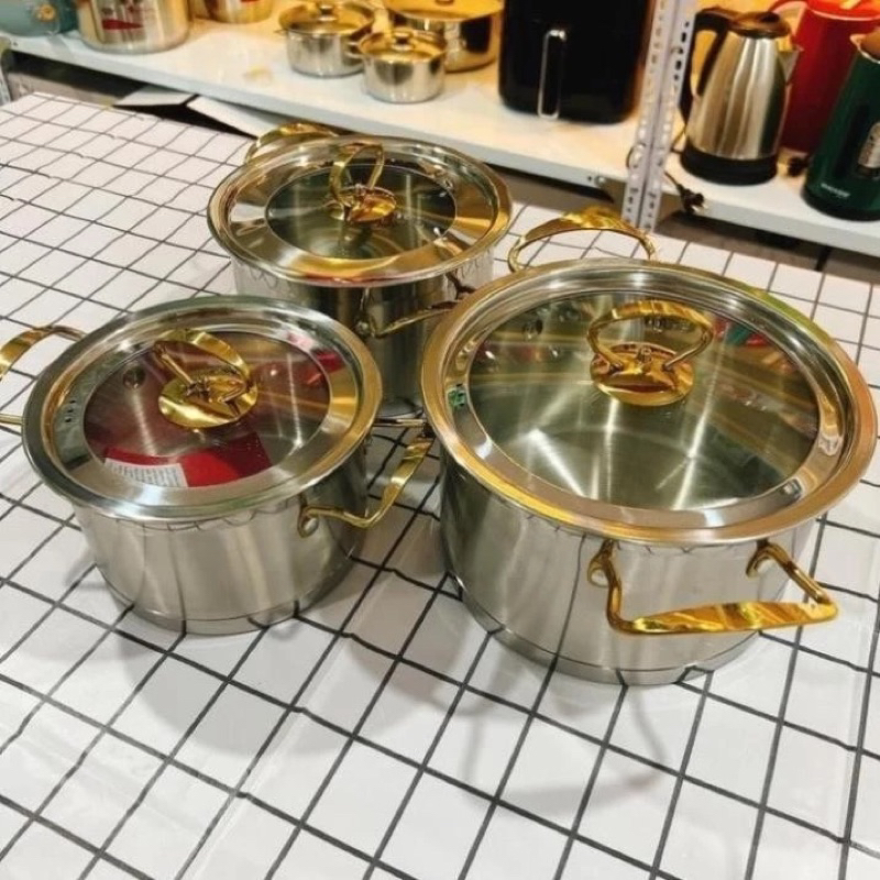 Bộ nồi 3 chiếc chất liệu inox 430 cao cấp, an toàn cho sức khỏe, bắt nhiệt nhanh, tiết kiệm thời gian đun nấu, sử dụng được trên mọi loại bếp, kể cả bếp từ.