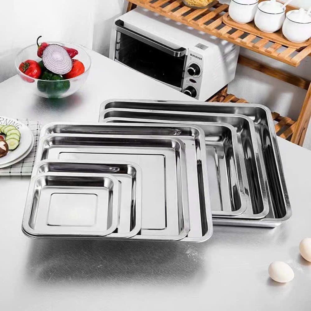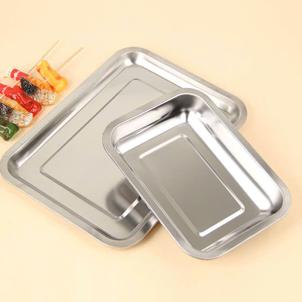 Tên sản phẩm: Bộ 4 khay inox chữ nhật đựng thực phẩm loại cạn