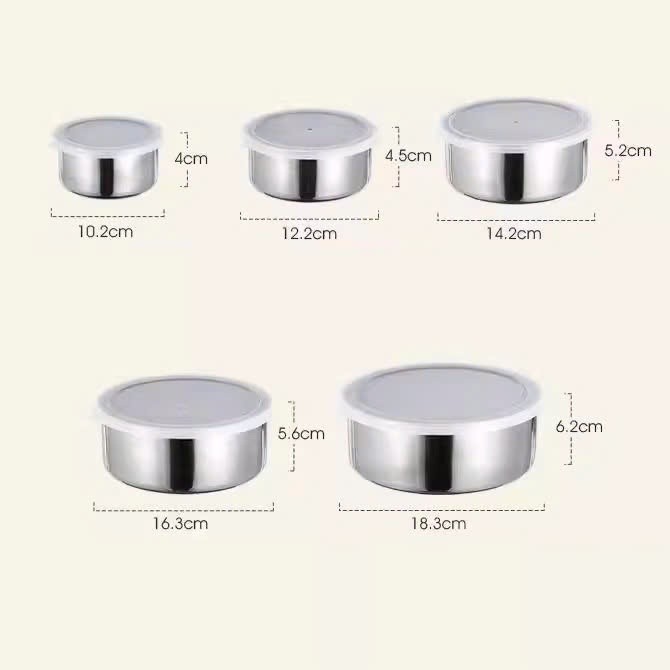 Bộ 5 Thố Inox Có Nắp Đậy (10cm 12cm 14cm 16cm Và 18cm)