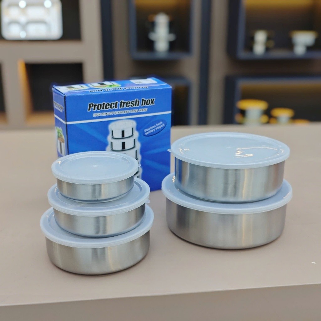 -Combo 5 hộp đựng thực phẩm inox nhiều kích thước, cho bạn thoải mái bảo quản thực phẩm.