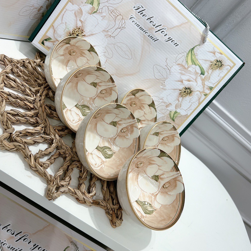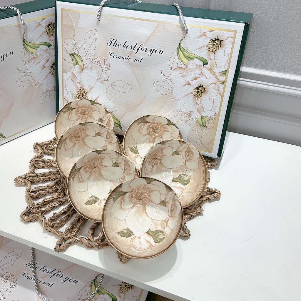 – Bộ sản phẩm gồm 6 bát con hàng cao cấp xuất Nhật, chất liệu sứ cao cấp tráng men với những đường in hoa văn trang nhã cho phòng ăn gia đình bạn thêm sang trọng, đẹp mắt.
