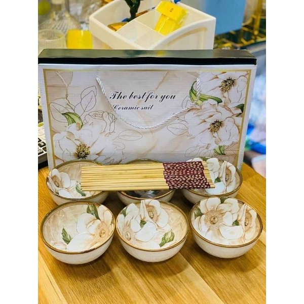 – Bộ sản phẩm bao gồm: 6 bát, 6 đôi đũa