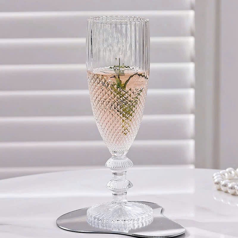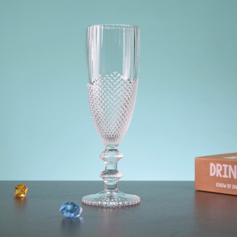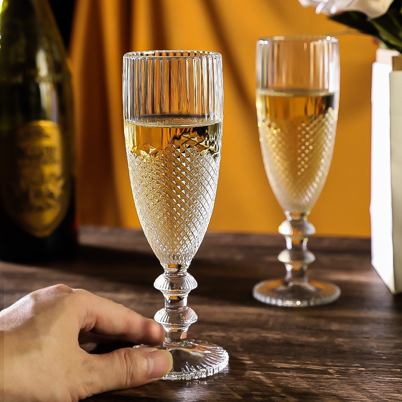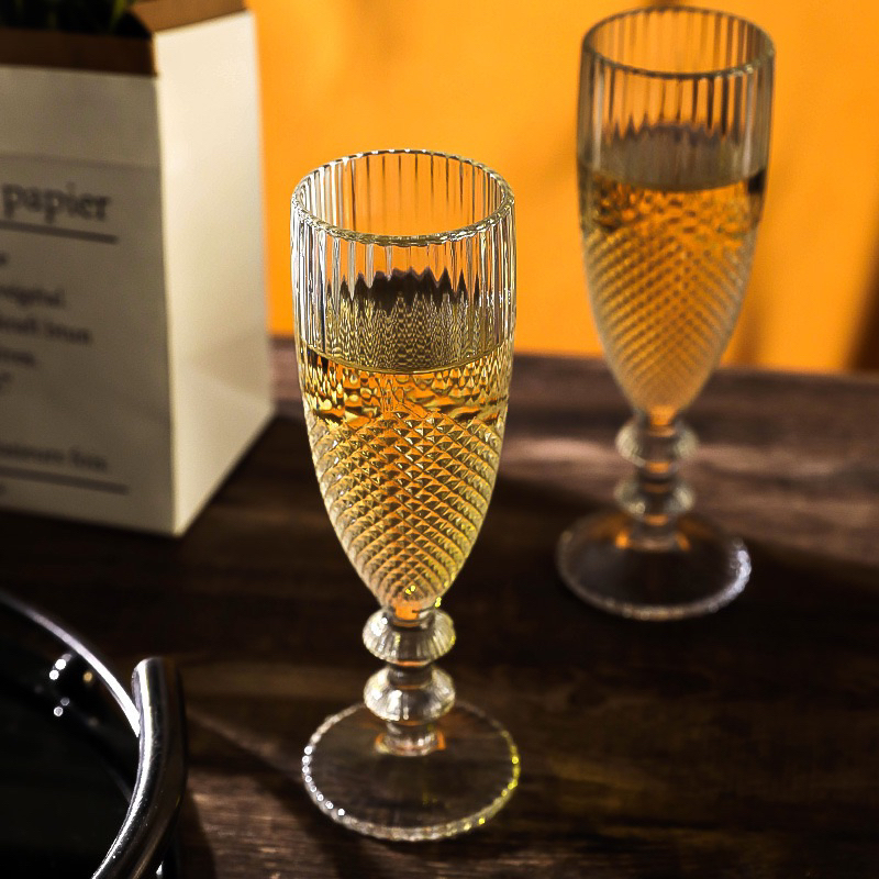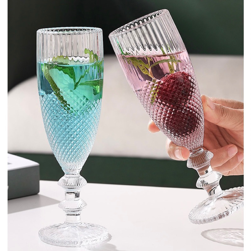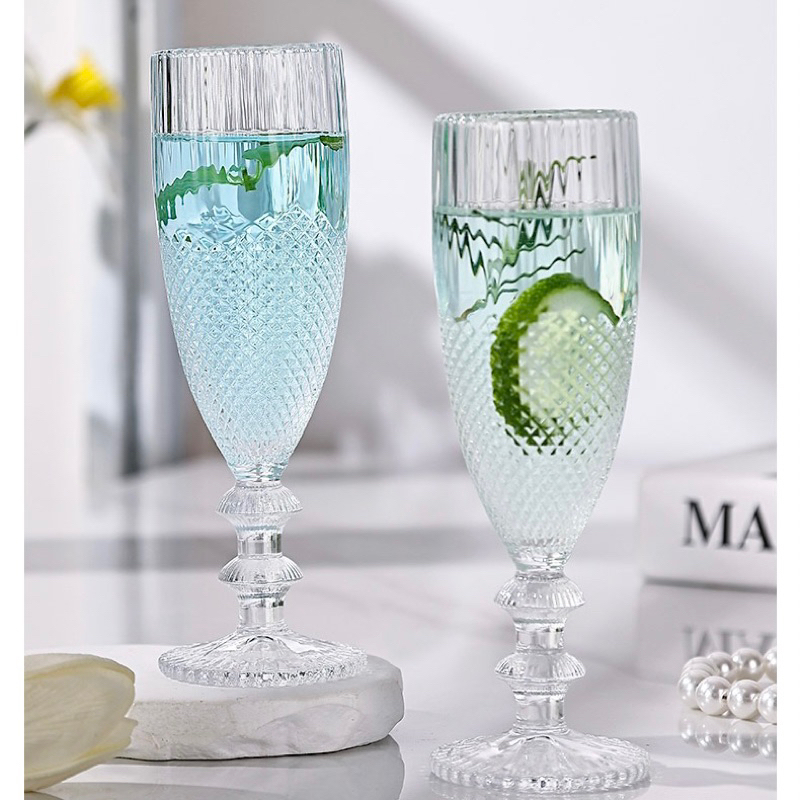 Hộp 6 ly thủy tinh sâm panh họa tiết sọc kim cương / ly thủy tinh có chân 165ml dùng trong tiệc đám cưới