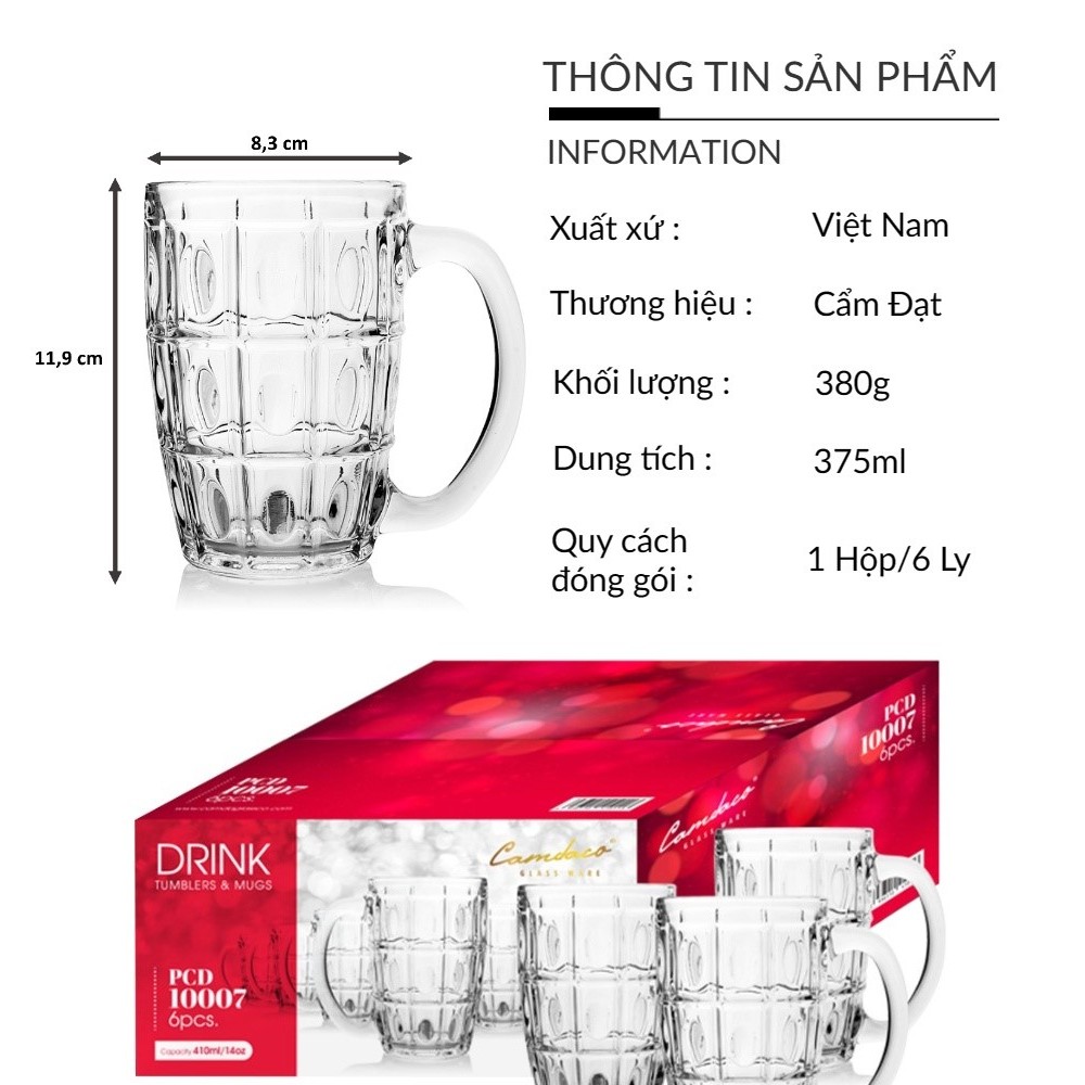 Ly Thủy Tinh Có Quai 375ml – PCD10007thích hợp sử dụng trên bàn tiệc, trong phòng khách cũng như bữa cơm gia đình hoặc có thể sử dụng làm quà tặng, là vật dụng không thể thiếu đối với mọi gia đình.