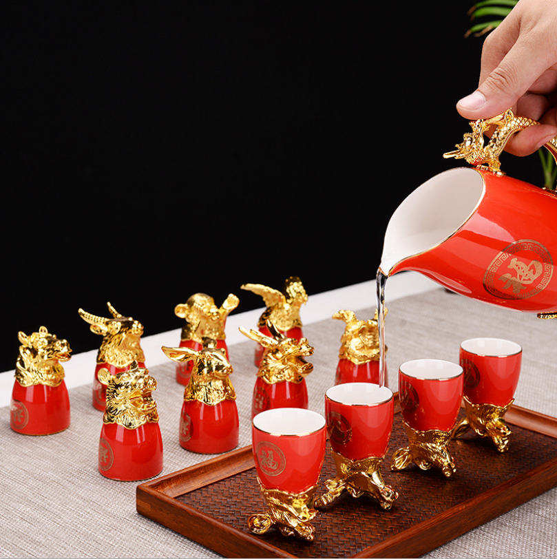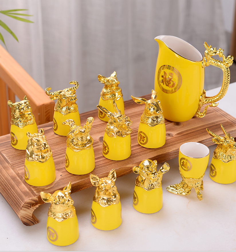 Bộ ly 12 con giáp, bộ ly 12 con giáp mạ vàng, bộ ly 12 con giáp tân cổ điển, bộ ly 12 con giáp nhập khẩu
