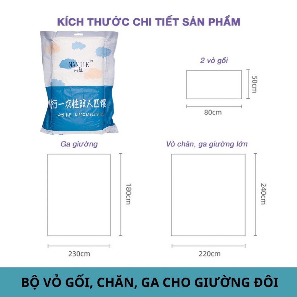 Bộ Chăn Ga Vỏ Gối Trải Giường Du Lịch Dùng 1 Lần (4 Chi Tiết)