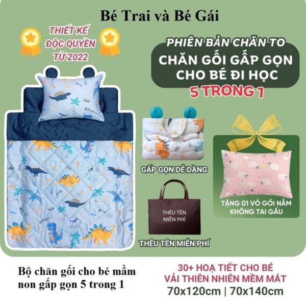 BỘ CHĂN GA GỐI GẤP GỌN 5 TRONG 1 CHO BÉ ĐI HỌC, ĐI DU LỊCH