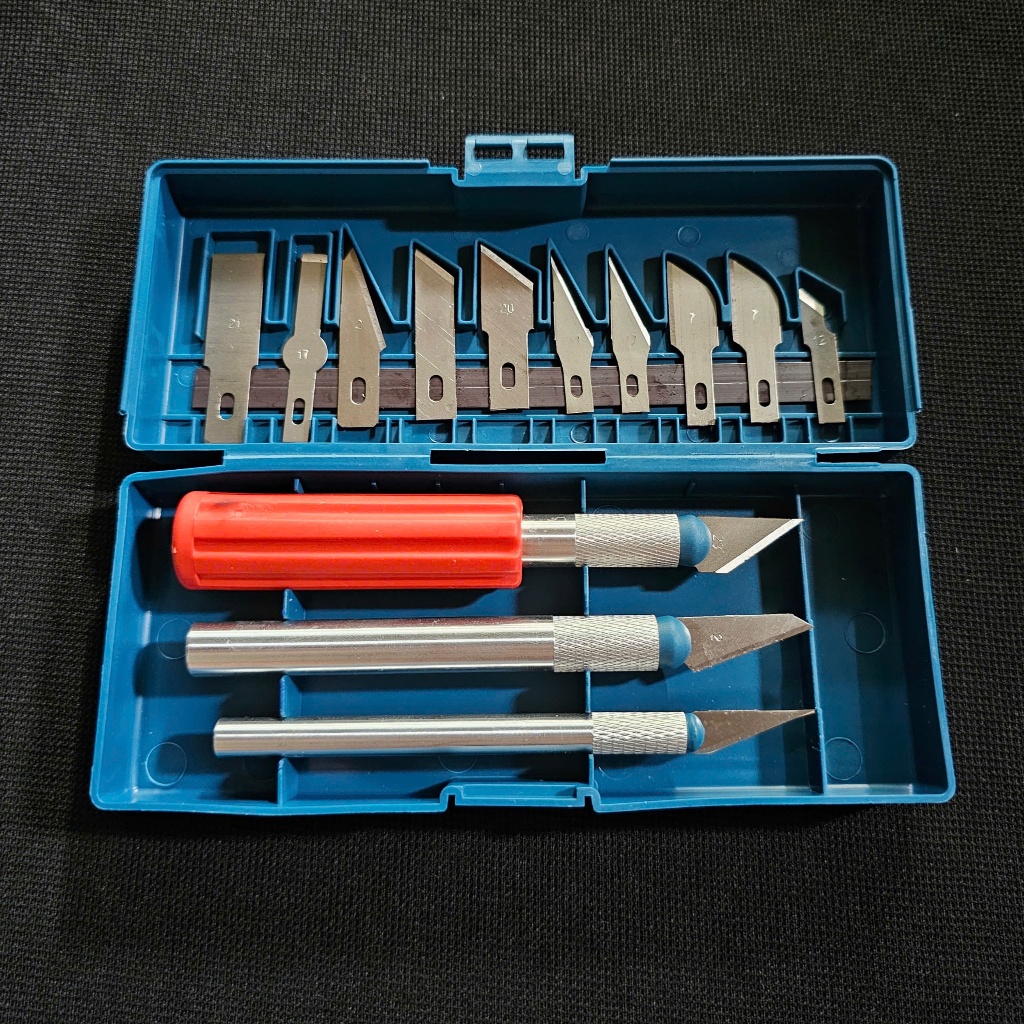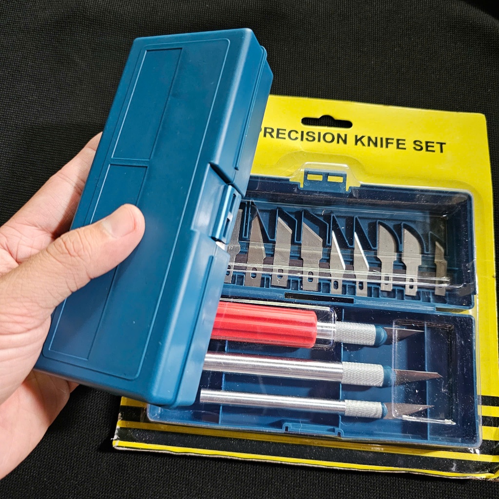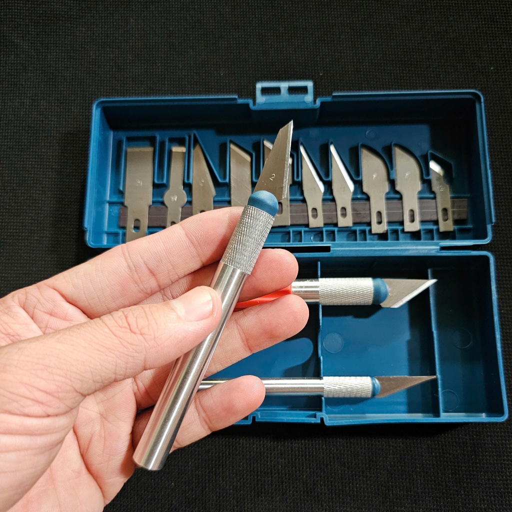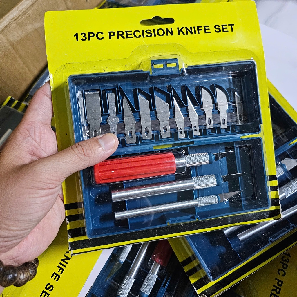 _ Bộ sản phẩm bao gồm 3 cán dao có gắn sẵn lưỡi + 10 lưỡi dao rời các loại