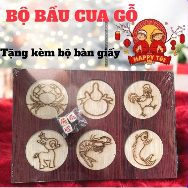 - Đồ chơi gồm 1 bàn với 6 ô tròn được khác lên các hình TÔM-CUA-BẦU-TÔM-NAI-CÁ khá sắc nét và 3 con xúc xắc 6 mặt