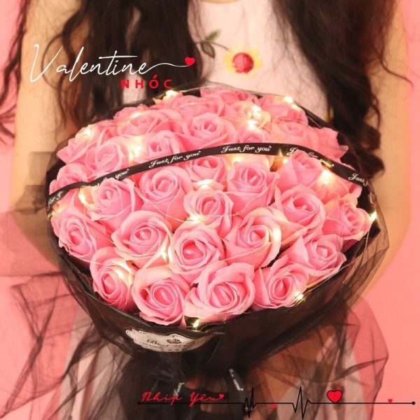 Sự kết hợp ấy tạo nên Bó Hoa Hồng Sap 50 Bông Tròn Có Đèn – món quả ý nghĩa chưa đựng tình cảm khi bạn tặng người khác