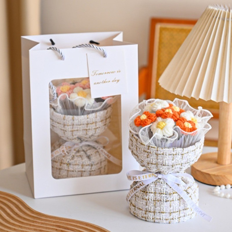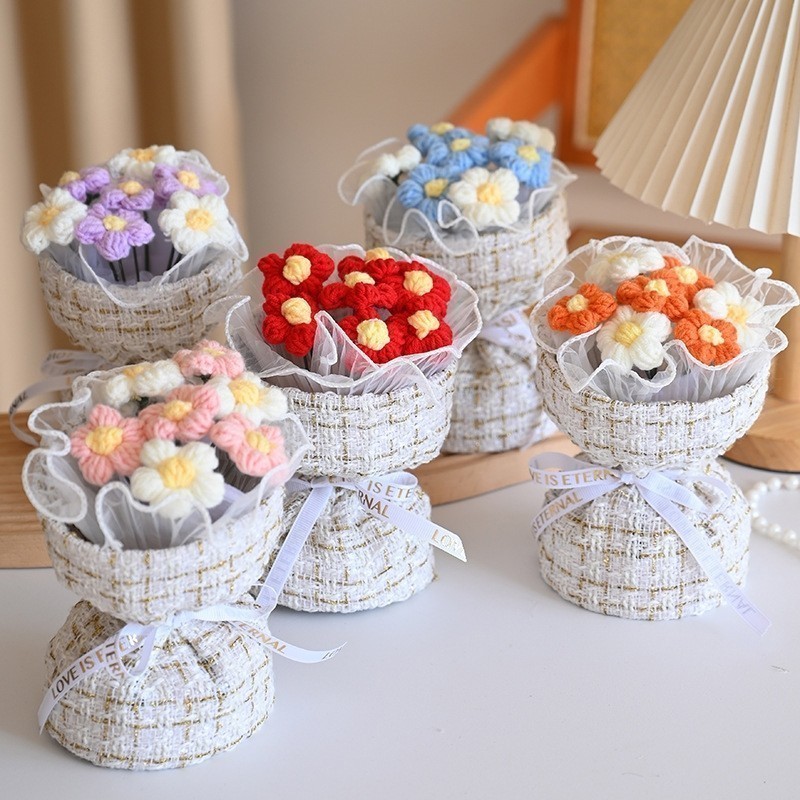 2. Làm thủ công tinh khiết: Những bông hoa dệt thủ công được đóng gói cẩn thận với sự khéo léo tinh tế, nhiều kiểu dáng khác nhau.