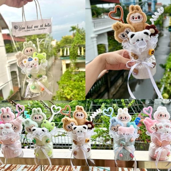 Bó Hoa Len Nhồi Bông Nhìu Hình 27Cm Kèm Bông Hoa, Nơ, Phụ Kiện///HB