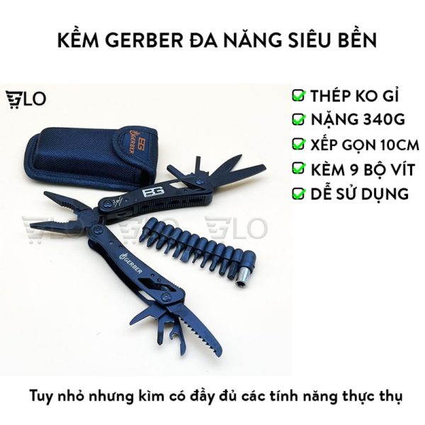 Các dụng cụ hầu hết được giấu trong hai tay nắm của kìm, độ ma sát tay cầm lớn tạo cảm giác thoải mái, chắc chắn khi sử dụng. Khi gấp lại kìm có chiều dài là 10cm được đựng gọn trong túi oxford,sau lưng túi là ngăn đựng kèm theo bộ 11 vít.