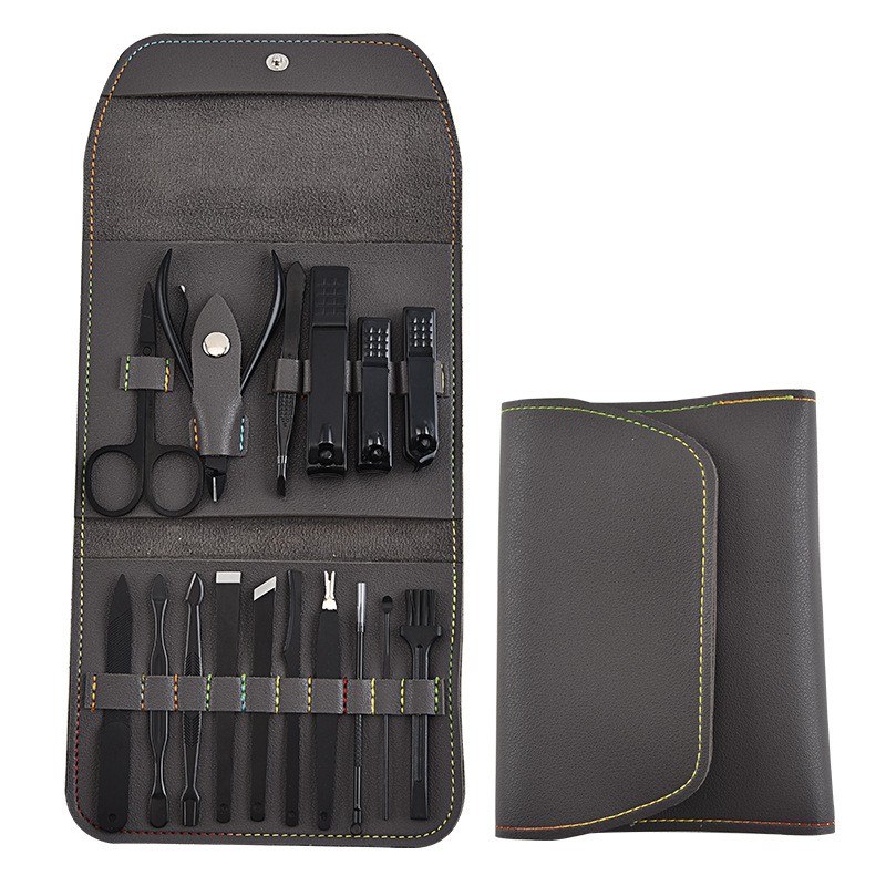 – Bộ công cụ làm móng gồm 16 món thép không gỉ-màu xanh-xám-màu da vàng
