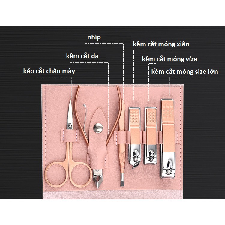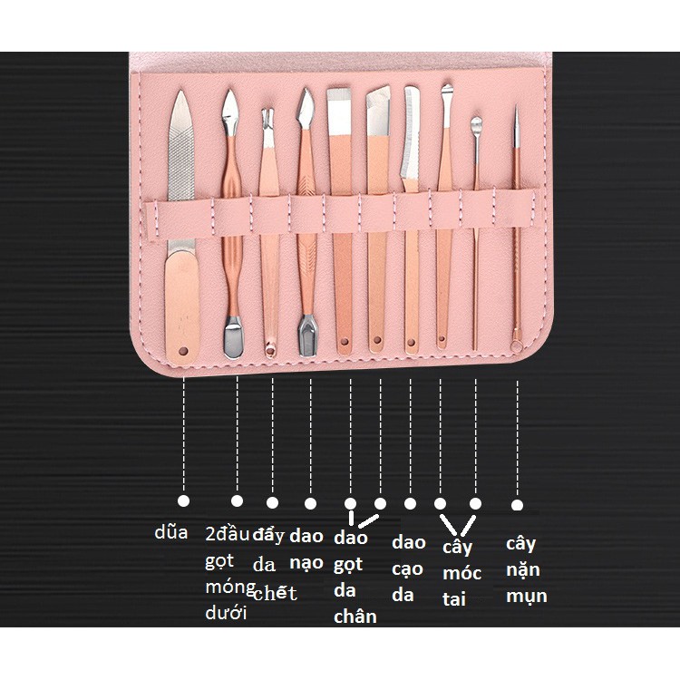 – Bộ công cụ làm móng gồm 16 món thép không gỉ-màu hồng