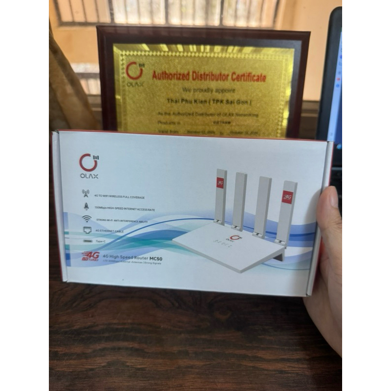 💡 Thông số Kỹ Thuật:– Modem : Olax MC50– Tốc độ truyền : 300Mbps– Thiết bị wifi 4G dùng được sim các nhà mạng– Hỗ trợ 10 người kết nối 1 lúc– Trang bị tới 4 râu giúp thu phát wifi khoẻ hơn– Có 1 cổng Lan/Wan-Thiết kế: Nhỏ gọn, di động– Nguồn điện : 12v hoặc Type-C📶 OLAX MC50 – Bộ Phát WiFi Lắp SIM với 4 AntenBạn muốn trải nghiệm một kết nối Internet mạnh mẽ và linh hoạt? Hãy đến với OLAX MC50 – Giải pháp WiFi di động hàng đầu!🚀 Phát Sóng Khoẻ Với 4 Ống Anten: OLAX MC50 mang đến khả năng phát sóng mạnh mẽ và ổn định nhờ vào 4 ống anten, giúp bạn kết nối mạng mọi lúc mọi nơi mà không lo sợ mất tín hiệu.🔗 Kết Nối Nhiều Thiết Bị: Với OLAX MC50, bạn có thể kết nối đến 32 thiết bị cùng một lúc mà không giảm tốc độ, từ smartphone, máy tính bảng đến laptop và thiết bị thông minh khác.📡 Tốc Độ 4G Siêu Nhanh: Trải nghiệm Internet mượt mà với tốc độ 4G cao cấp của OLAX MC50, giúp bạn duyệt web, xem phim, chơi game mà không gặp trở ngại.🔒 Bảo Mật Cao Cấp: OLAX MC50 được trang bị tính năng bảo mật hàng đầu, đảm bảo thông tin cá nhân của bạn luôn an toàn khi sử dụng mạng Internet.💡 Dễ Dàng Sử Dụng: Với thiết kế nhỏ gọn và dễ di chuyển, OLAX MC50 là sự lựa chọn hoàn hảo cho mọi người, từ cá nhân đến doanh nghiệp.