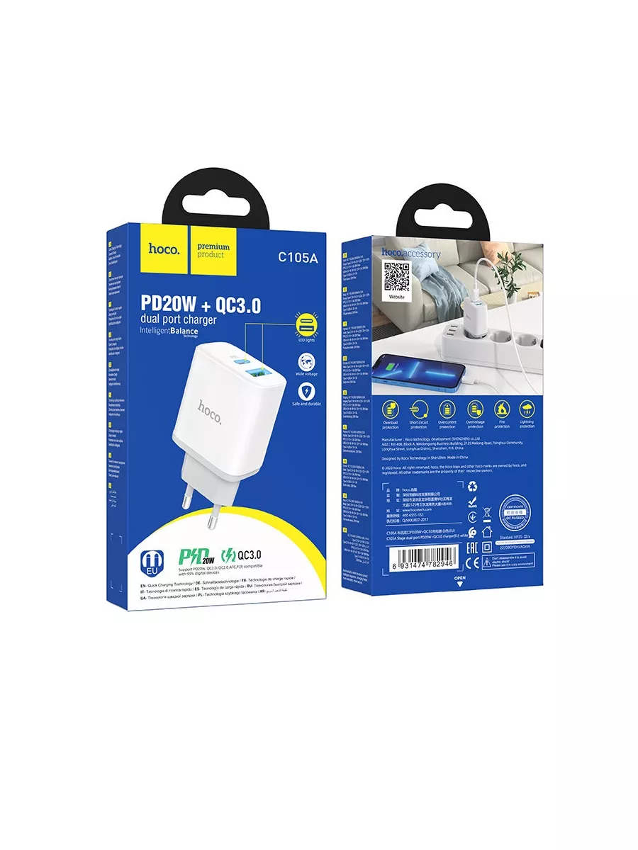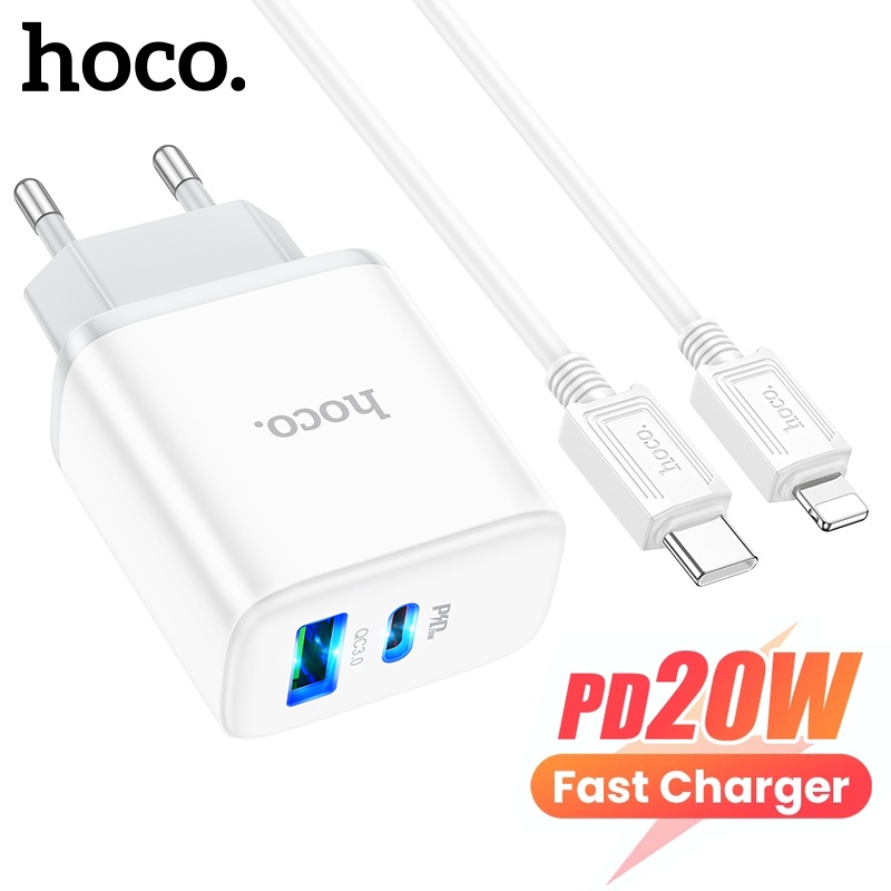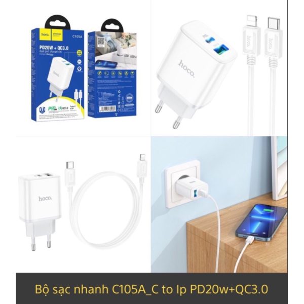 Bộ Sạc/ Cốc Nhanh 20W Hoco C105A. 2 Đầu Typec Ra Lightning///DL