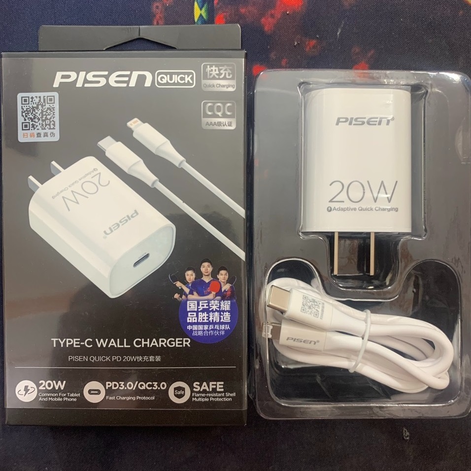 Bộ Sạc Nhanh Mr White USB-C 20W CL1000 Lightning - Pisen TS-C135PISEN QUICK-Mr White USB-C 20W(Lightning )Củ sạc nhanh Lightning Pisen 20W (Cáp C to Lightning) - Likenew 99%