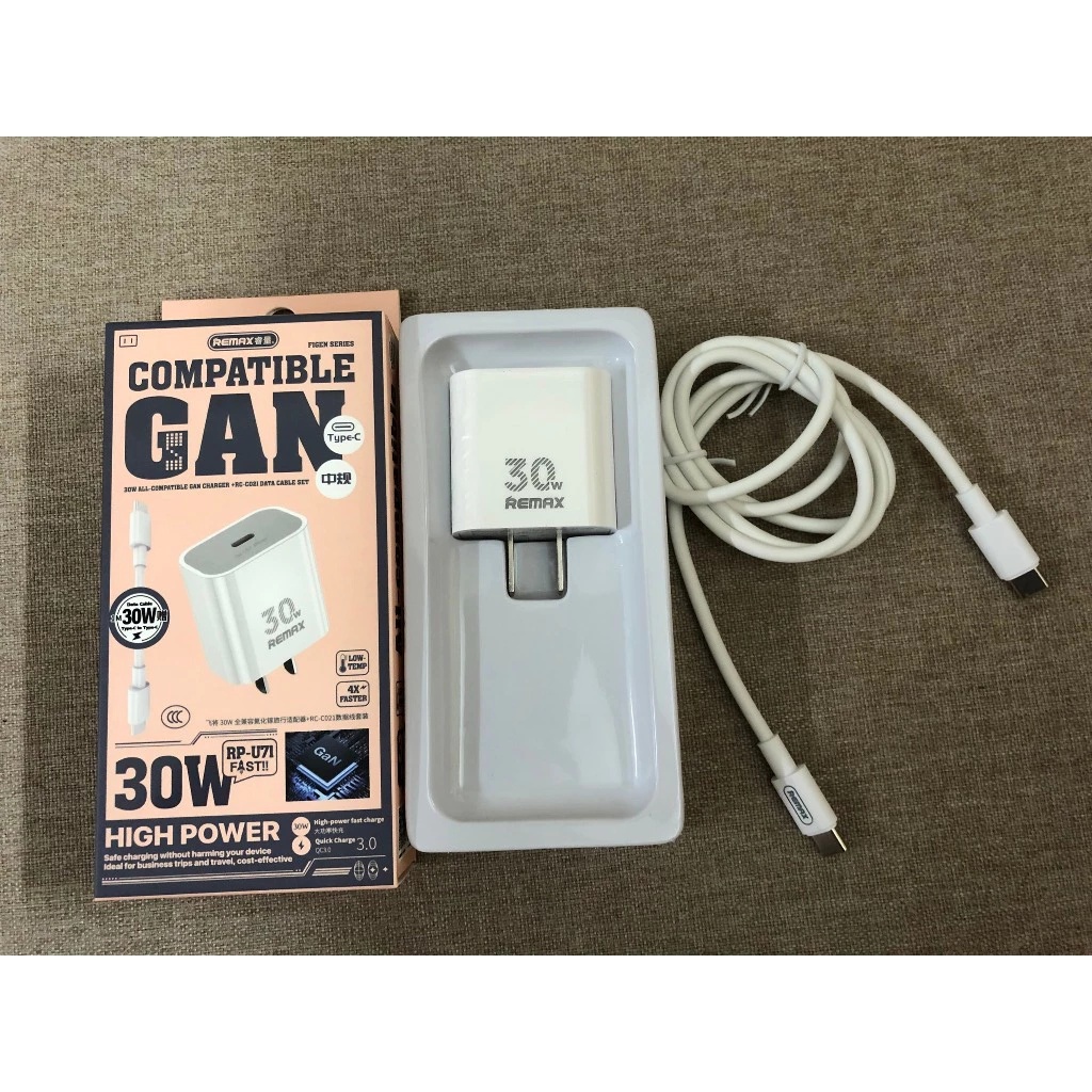 Bộ Sạc Nhanh 30W 2 Đầu Type-C Remax RP-U71 CN