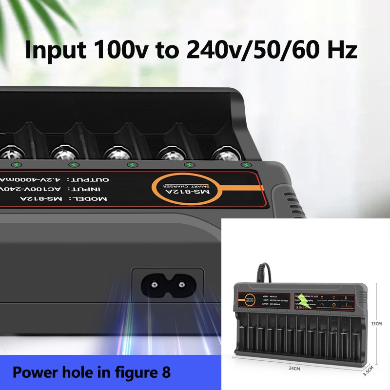 1 x 12 Khe cắm Pengisi Daya Baterai