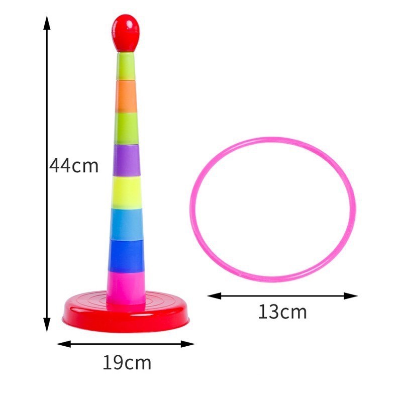 - Sản phẩm gồm 1 cọc gắn liền với chân đế, và 8 vòng thảy đầy màu sắc.