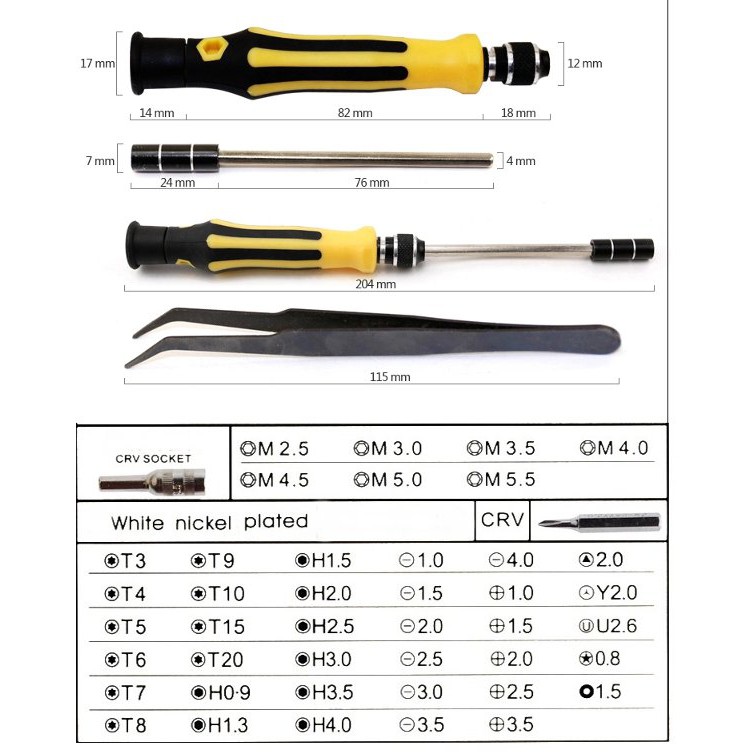 – MỖI DẠNG ĐẦU GỒM NHIỀU KÍCH THƯỚC KHÁC NHAU, ĐẢM BẢO MỞ ĐƯỢC TẤT CẢ CÁC LINH KIỆN