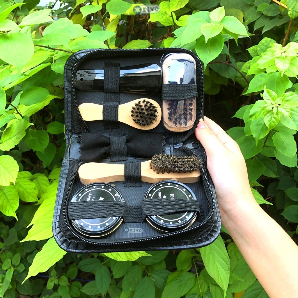 👉 01 Bàn chải tán xi: Thiết kế cán dài cầm tay nhỏ gọn, giúp lấy xi và bôi đều lên các ngóc ngách của giày mà không làm bẩn tay.