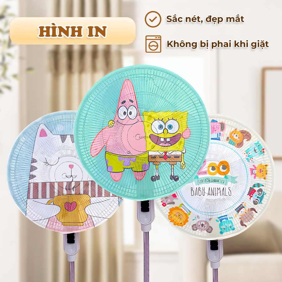 Bọc quạt chống bụi an toàn cho bé có dây rút vô cùng tiện lợi nhiều hình xinh yêu