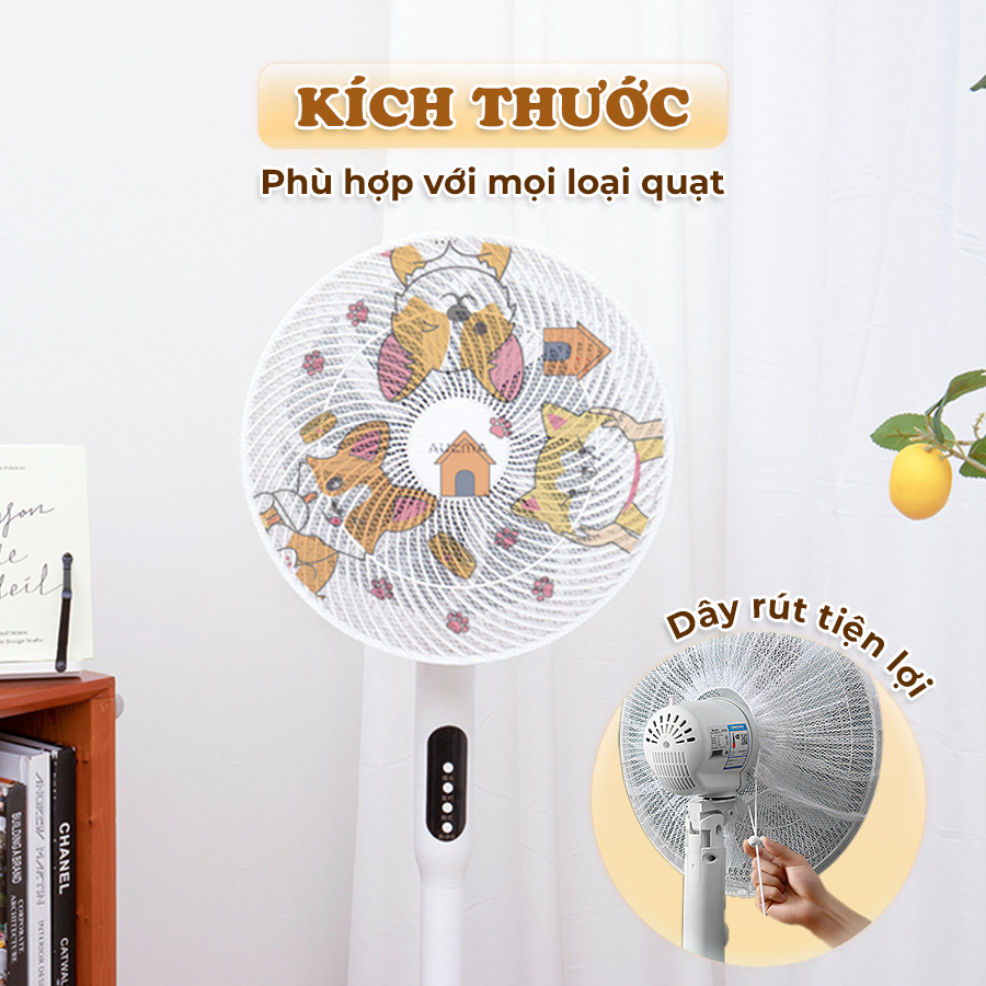 Bọc Trùm Quạt Chống Bụi Có Dây Rút Lưới Hình Thú