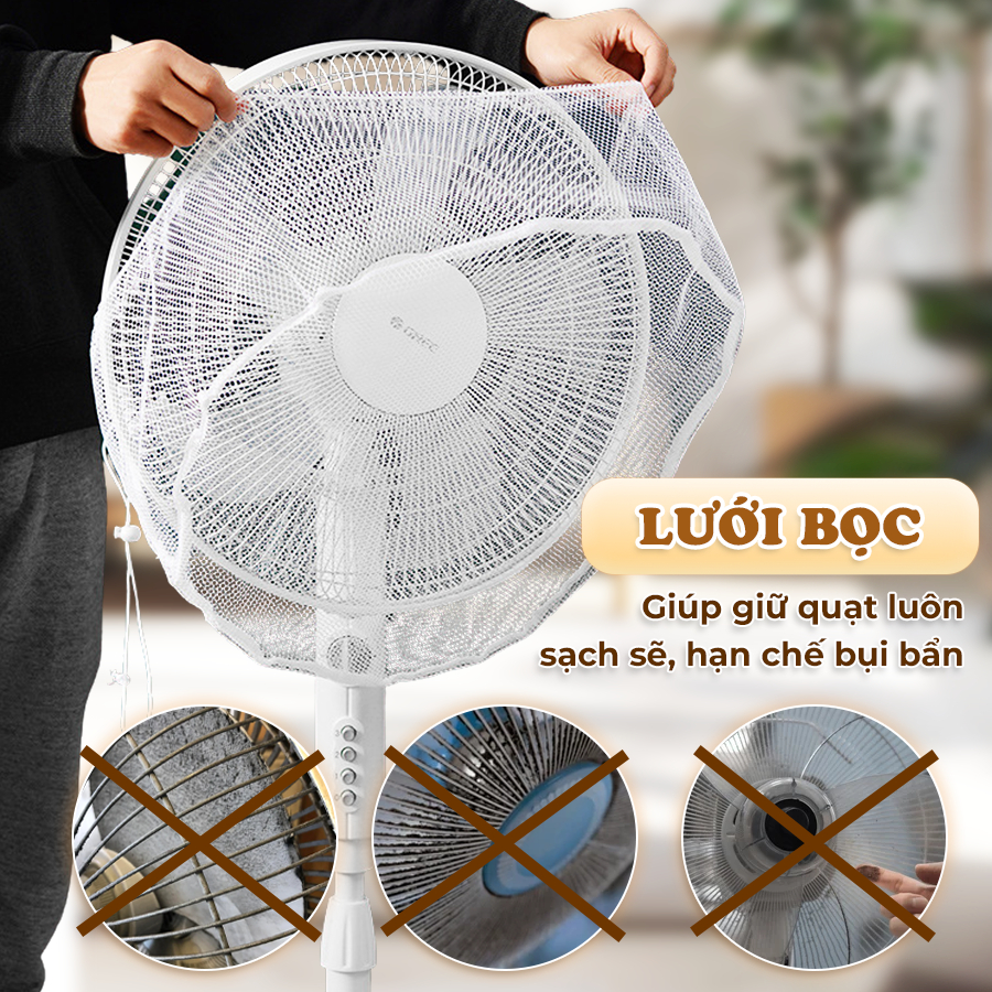 – Lưới bọc giúp giữ quạt luôn sạch sẽ, hạn chế bụi bẩn