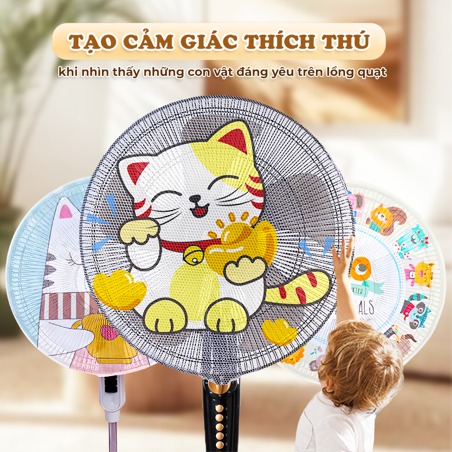 – Tạo cảm giác thích thú cho bé khi nhìn thấy những con vật đáng yêu trên lồng quạt