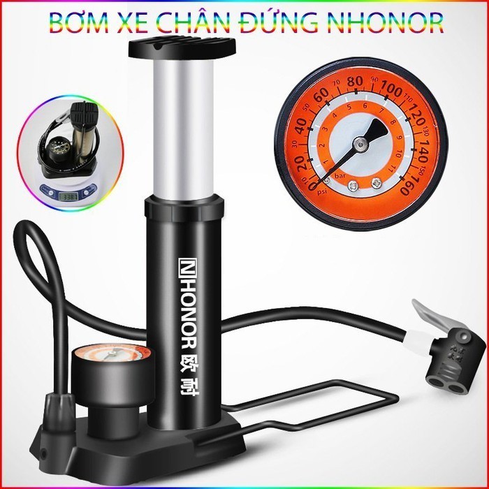 Bơm hơi dùng chân cho xe NHONOR giúp bơm khỏe hơn, tiết kiệm thời gian hơn
