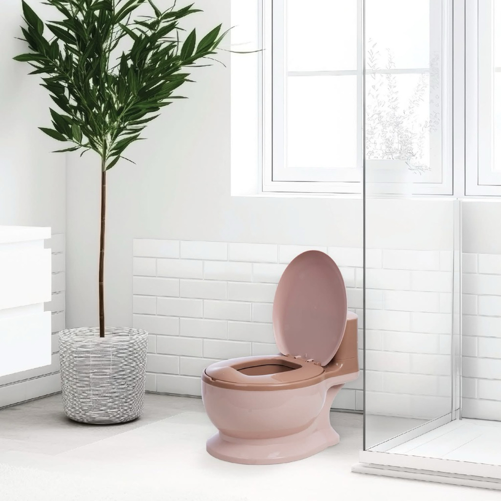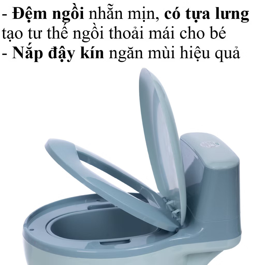 – Màu sắc hiện đại, kiểu dáng giống bồn cầu thông thường giúp bé tập đi vệ sinh dễ dàng