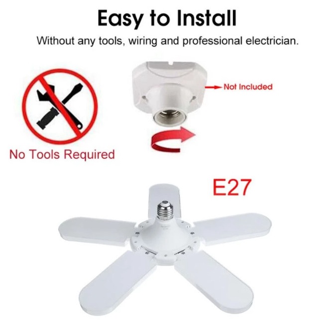 4. Dễ dàng cài đặt: không cần dụng cụ và không dây, sử dụng đui E27 thông dụng, dùng chung với đui đèn có sẵn.