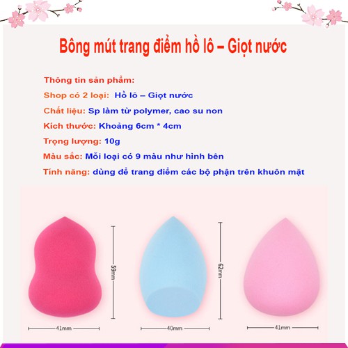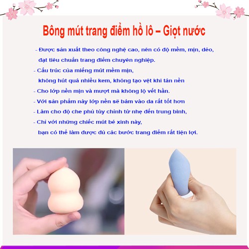 Chất lượng cao su mềm và mịn, hoàn toàn tự nhiên, không hóa chất tán phấn đều và hiệu ứng trang điểm tự nhiên, thân thiện với mọi làn da, có thể sử dụng với mỹ phẩm khô và ướt.