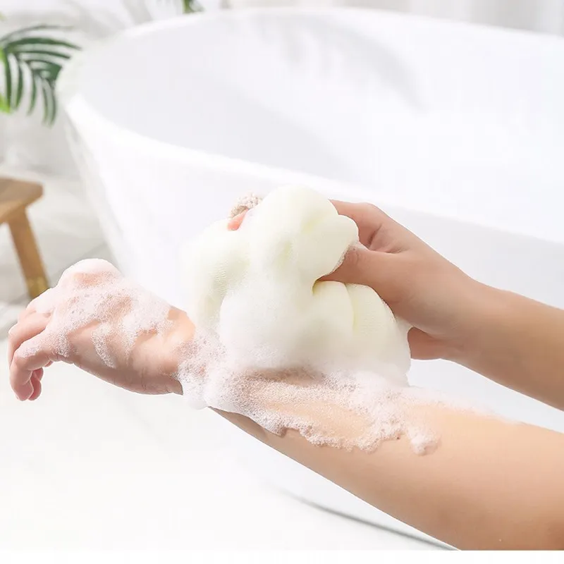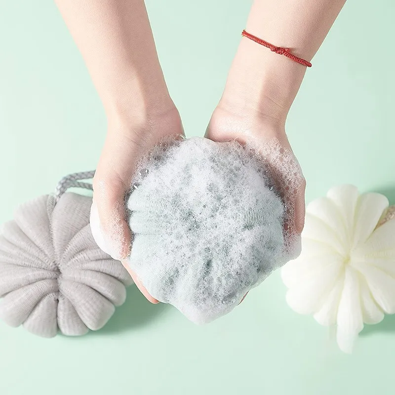 Bông phấn lưới tắm và tắm với khả năng tẩy tế bào chết và tẩy tế bào chết nhẹ nhàng trên cơ thể.